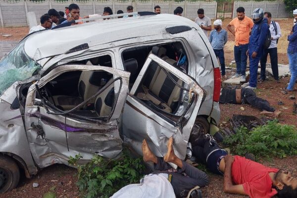 अनियंत्रित गति से कार दीवार से टकरा जाने से तीन लोगों की सड़क दुर्घटना में मृत्यु..