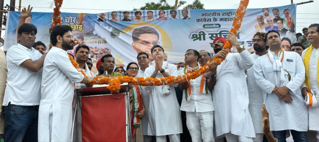 कांग्रेस की ओर से तखतपुर में वोट चोर गद्दी छोड़ के तहत हस्ताक्षर अभियान के अवसर पर कांग्रेस के छत्तीसगढ़ प्रदेश प्रभारी सचिन पायलट ने उपस्थित कार्यकर्ताओं और कांग्रेस के पदाधिकारीयों को संबोधित करते हुए कहा। आगे उन्होंने कहा कि देश में निर्वाचन कराने की जवाबदारी निर्वाचन आयोग को है इस संस्था के ऊपर कभी भी सवालिया निशान नही था लेकिन कुछ समय से इनकी गतिविधियों से लग रहा है कि यह एक निष्पक्ष संस्था नही रही है किसी पार्टी विशेष के कार्यकर्ता के रूप में काम कर रही है जब हमारी पार्टी ने निर्वाचन आयोग से मतदाता सूची की मांग की और जब आयोग नही उपलब्ध नही कराया तो इस मामले को पार्टी ने उच्चतम न्यायालय में लगाया और जब उच्चतम न्यायालय ने निर्वाचन आयोग को मतदाता सूची उपलब्ध कराने का आदेश दिया तो फैसला आते ही आयोग ने अपनी कानून में संशोधन कर दिया कि मतदाता सूची नही दी जा सकती इससे साफ जाहिर होता है कि जरूर गड़बड़ी की जा रही है यदि मतदाता सूची मिल जाएगी तो सभी काले कारनामे बाहर आ सकते है। जब किसी बिंदू पर पार्टी निर्वाचन आयोग से जानकारी मांगती है तो इसका जवाब भाजपा के प्रवक्ता देते है इससे यह प्रतित हो रहा है कि आयोग किसी खास पार्टी के लिए ही काम कर रही है।