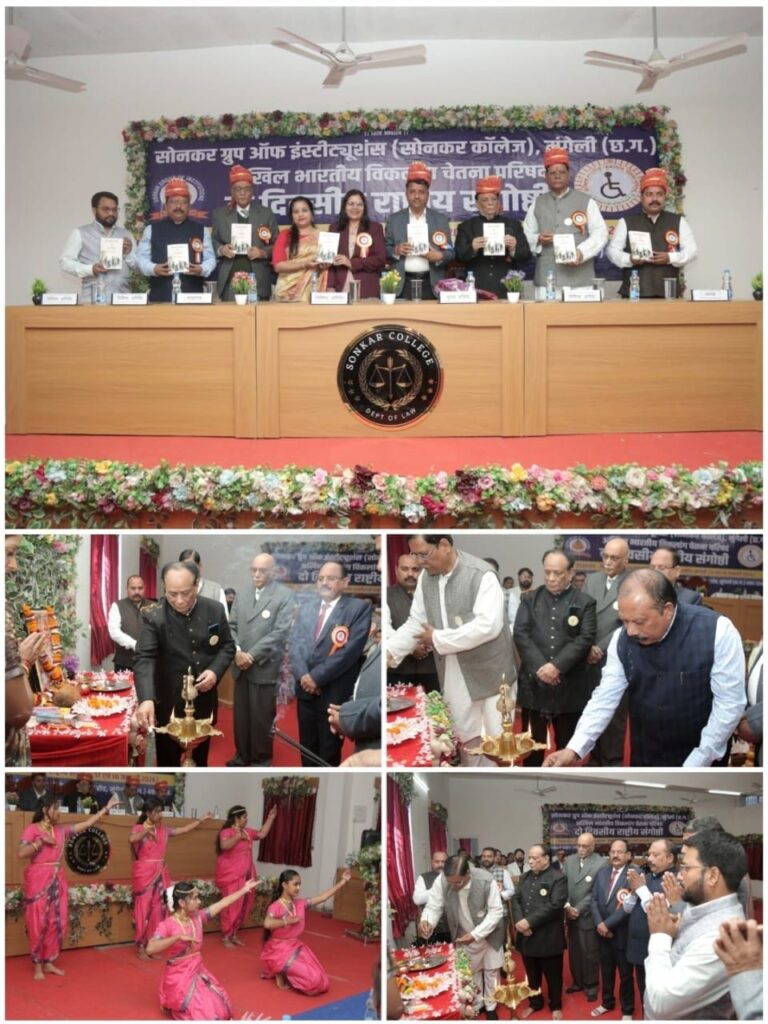 मुंगेली। सोनकर कॉलेज, मुंगेली में आयोजित 19वीं दो दिवसीय राष्ट्रीय संगोष्ठी का भव्य और गरिमामय समापन हो गया। यह आयोजन 17 एवं 18 जनवरी 2026 को “विकलांग विमर्श : एक अध्ययन” विषय पर आयोजित किया गया, जिसमें छत्तीसगढ़ सहित देश के विभिन्न राज्यों से आए शिक्षाविदों, शोधार्थियों, प्राचार्यों, प्राध्यापकों एवं समाजसेवियों ने भाग लिया। यह कार्यक्रम मुंगेली क्षेत्र का अब तक का सबसे बड़ा और गौरवशाली राष्ट्रीय शैक्षणिक आयोजन माना जा रहा है।कॉलेज के डायरेक्टर शिव आशीष सोनकर ने बताया कि संगोष्ठी का शुभारंभ 17 जनवरी को डॉ. व्ही. के. सरस्वत, कुलपति पंडित सुंदरलाल शर्मा मुक्त विश्वविद्यालय, बिलासपुर के मुख्य आतिथ्य में तथा डॉ. विनय कुमार पाठक, राष्ट्रीय कार्यकारी अध्यक्ष अखिल भारतीय विकलांग चेतना परिषद एवं कुलपति थावे विद्यापीठ, गोपालगंज (बिहार) की अध्यक्षता में हुआ। कार्यक्रम में न्यायमूर्ति चंद्र भूषण वाजपेई (पूर्व न्यायाधीश, छत्तीसगढ़ उच्च न्यायालय), मदन मोहन अग्रवाल (राष्ट्रीय महामंत्री, अखिल भारतीय विकलांग चेतना परिषद), संतुलाल सोनकर (संस्थापक, सोनकर कॉलेज) एवं शिव आशीष सोनकर विशेष अतिथि के रूप में मंचासीन रहे।